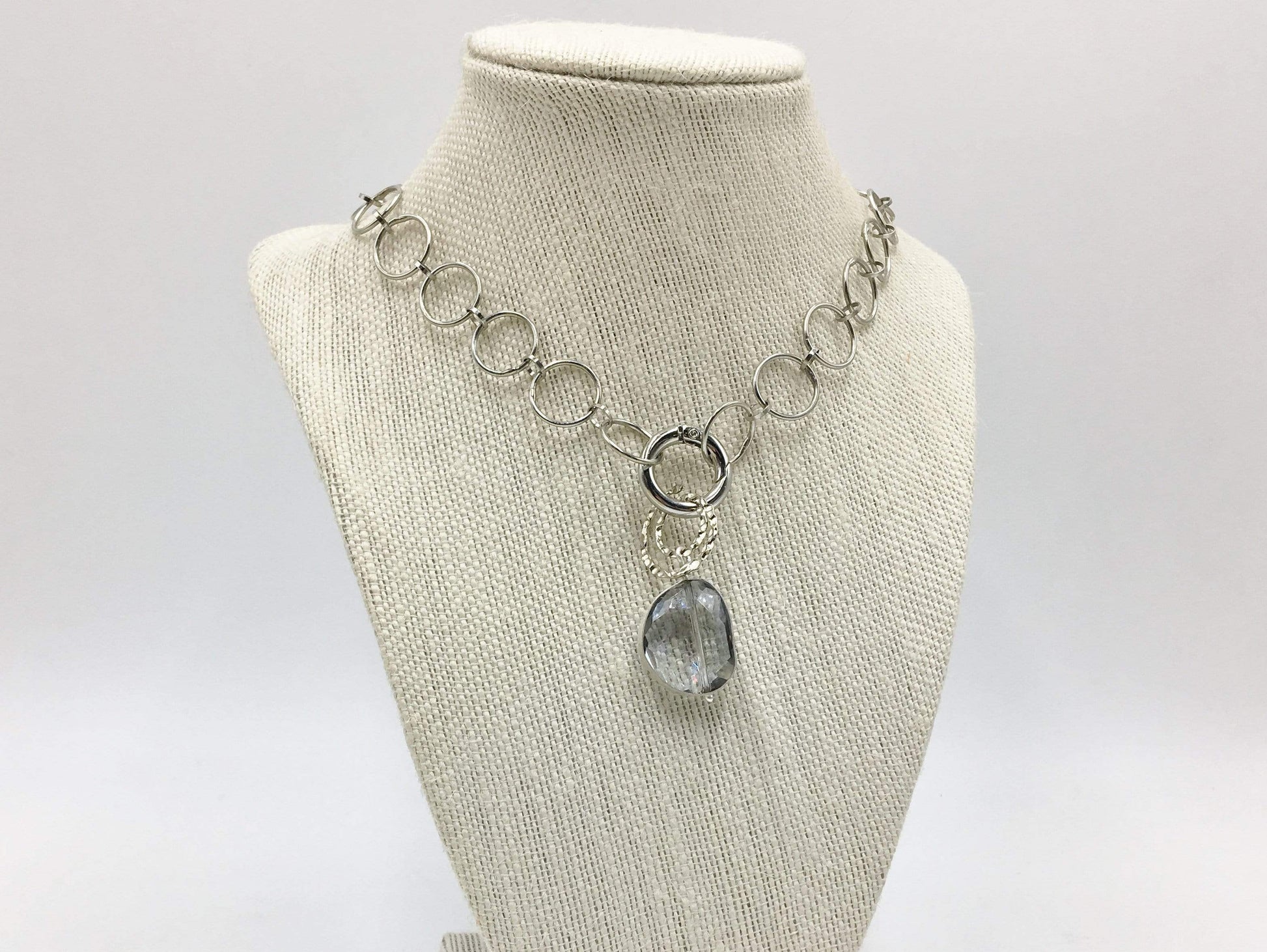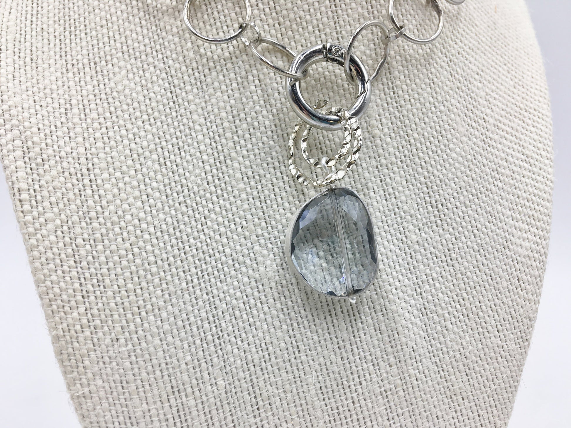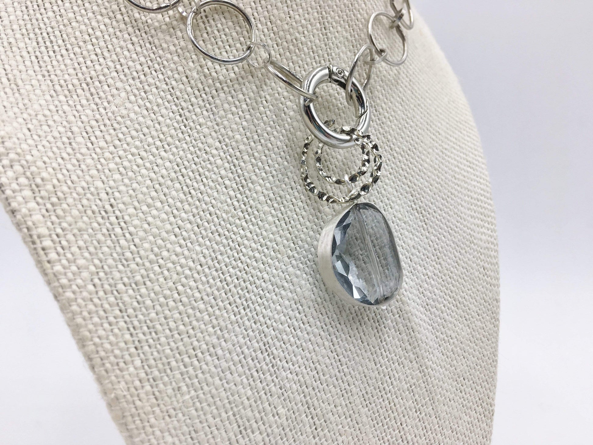 Our handmade Light Blue Enchantment Pendant is an eye catching, dazzling piece set in a silver encasement.